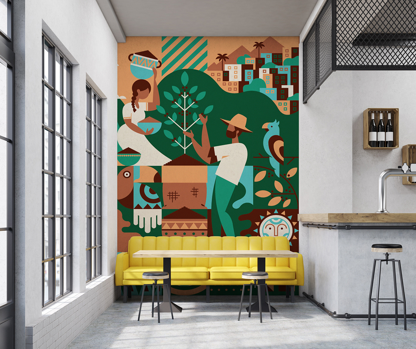 CoffeeHouse Wall Illustration
